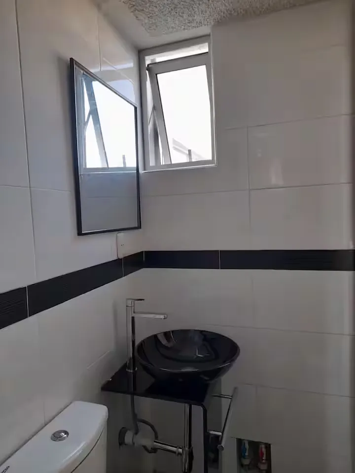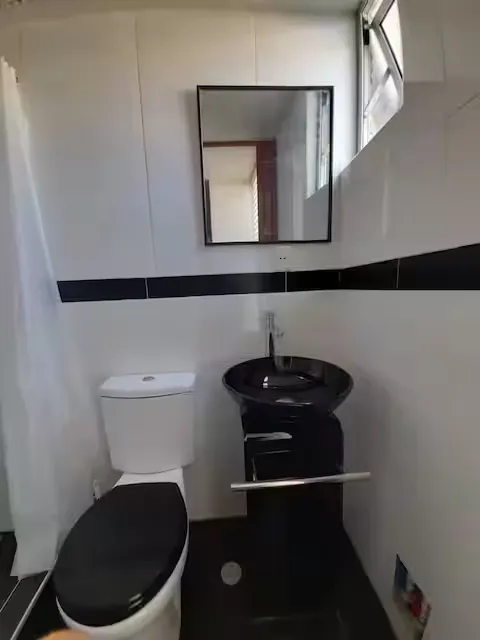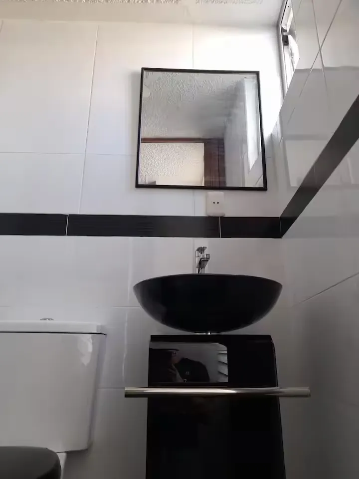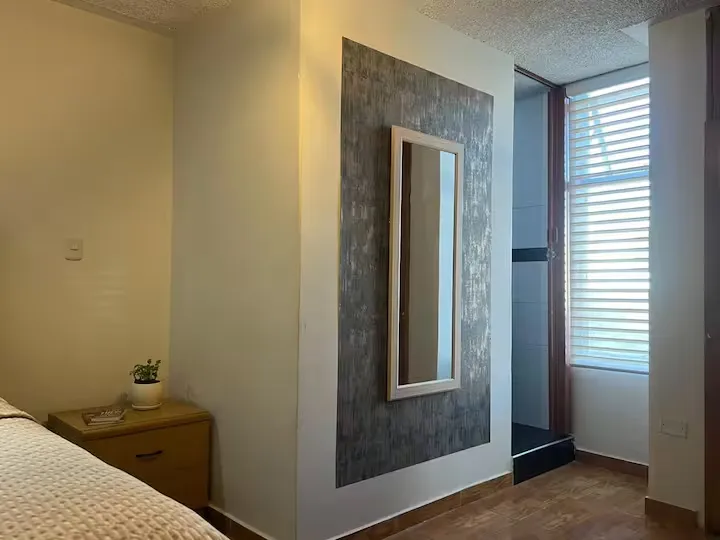 El baño se encuentra dentro de la habitación, cuenta con agua caliente.¡Puedes acceder a los espacios comunes de los huéspedes como la cocina! Que se encuentra en un 3er pisote esperamos!
