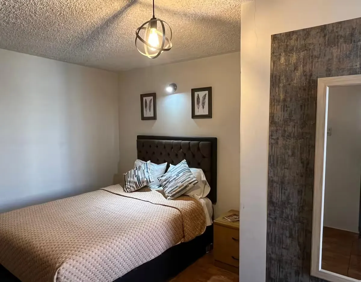 Se encuentra ubicada en el piso 2 y cuenta con una cama de 2 plz con colchón royal Prince, ropero empotrado, velador, sillón, mesa y sillas para que puedas comer con comodidad.