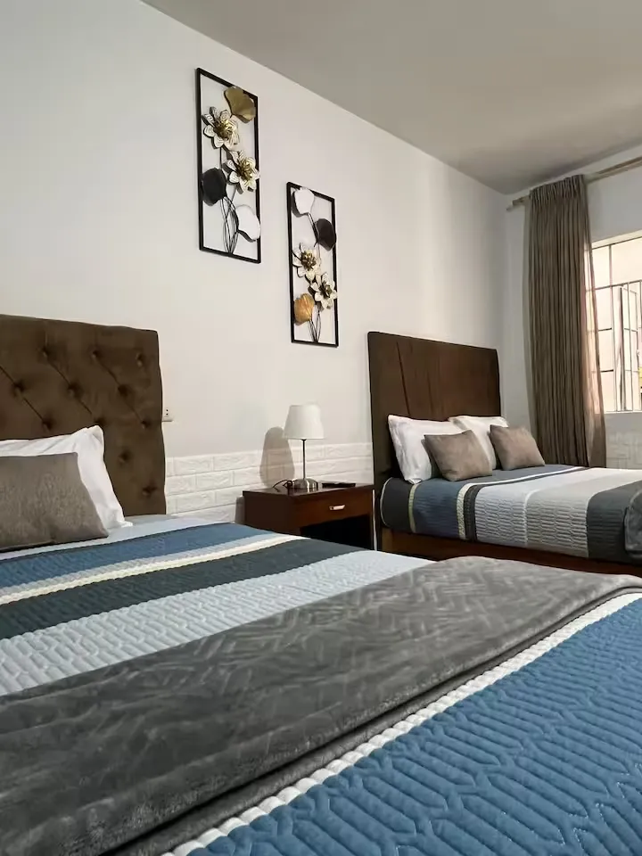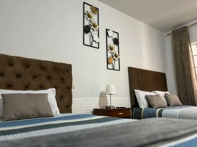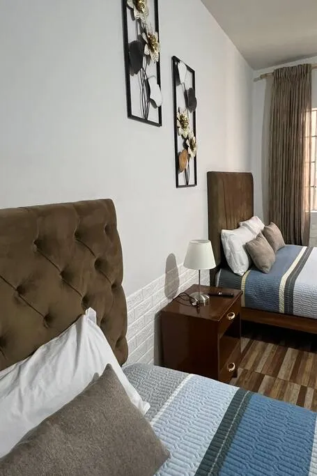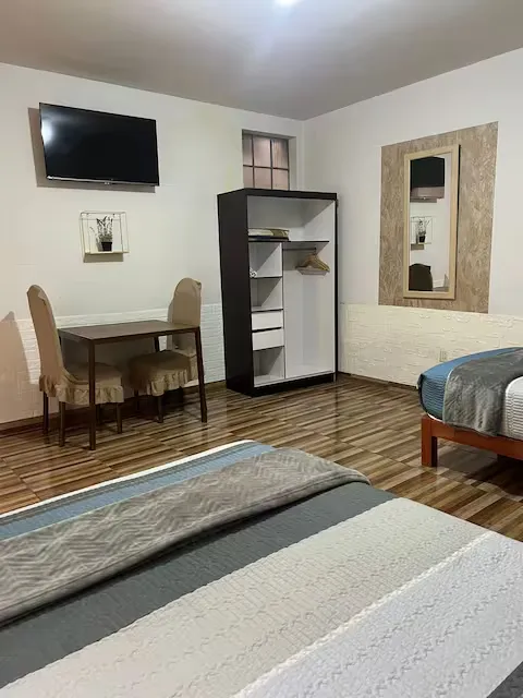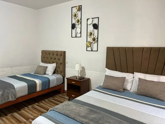 Somos una casa hospedaje. La habitación cuenta con 2 camas, una de 2 plz y una de 1.5 plz, un espacio amplio y cómodo, wifi, TV smart, baño privado con agua caliente, ropero y velador.Contamos con espacios compartidos, como una cocina equipada y un patio.La habitación se encuentra en el primer piso, y tiene acceso independiente, está ubicada en una zona comercial, mercados, transporte público a toda la ciudad, además, estamos a 4 cuadras de la Plaza de Armas y mercado San Camilo.