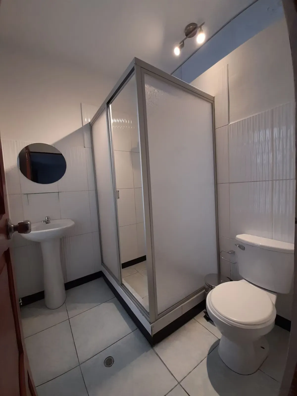 Esta habitación, cuenta con baño privado y agua caliente, terma solar, adicionalmente contamos con ducha eléctrica en baño común.