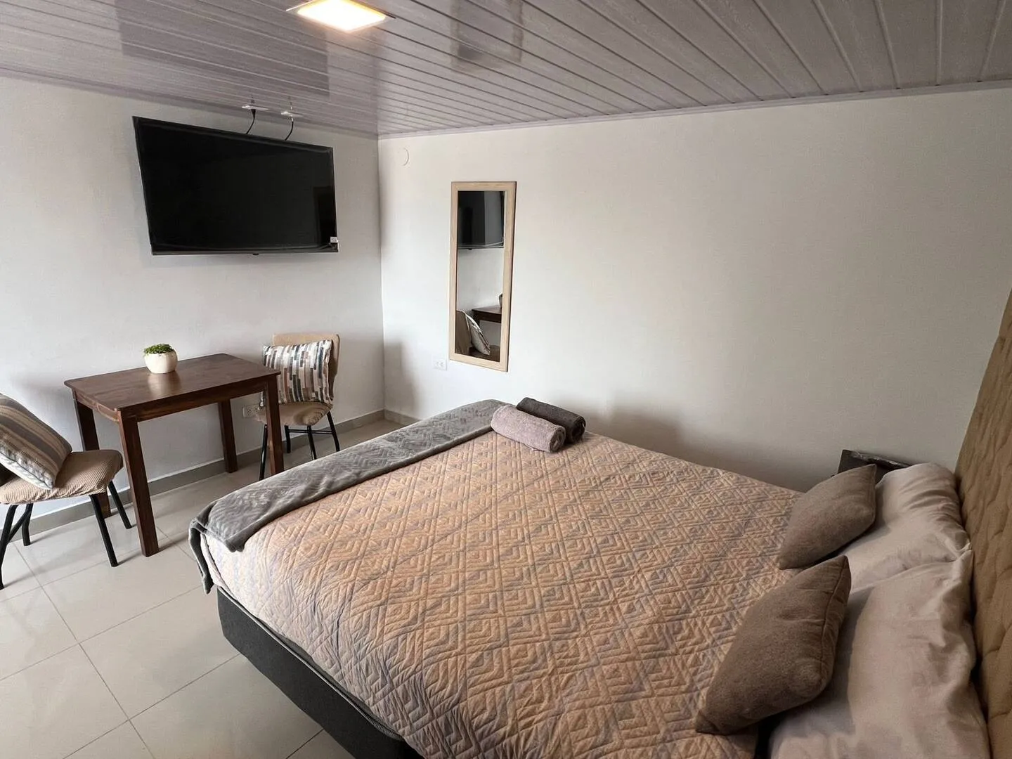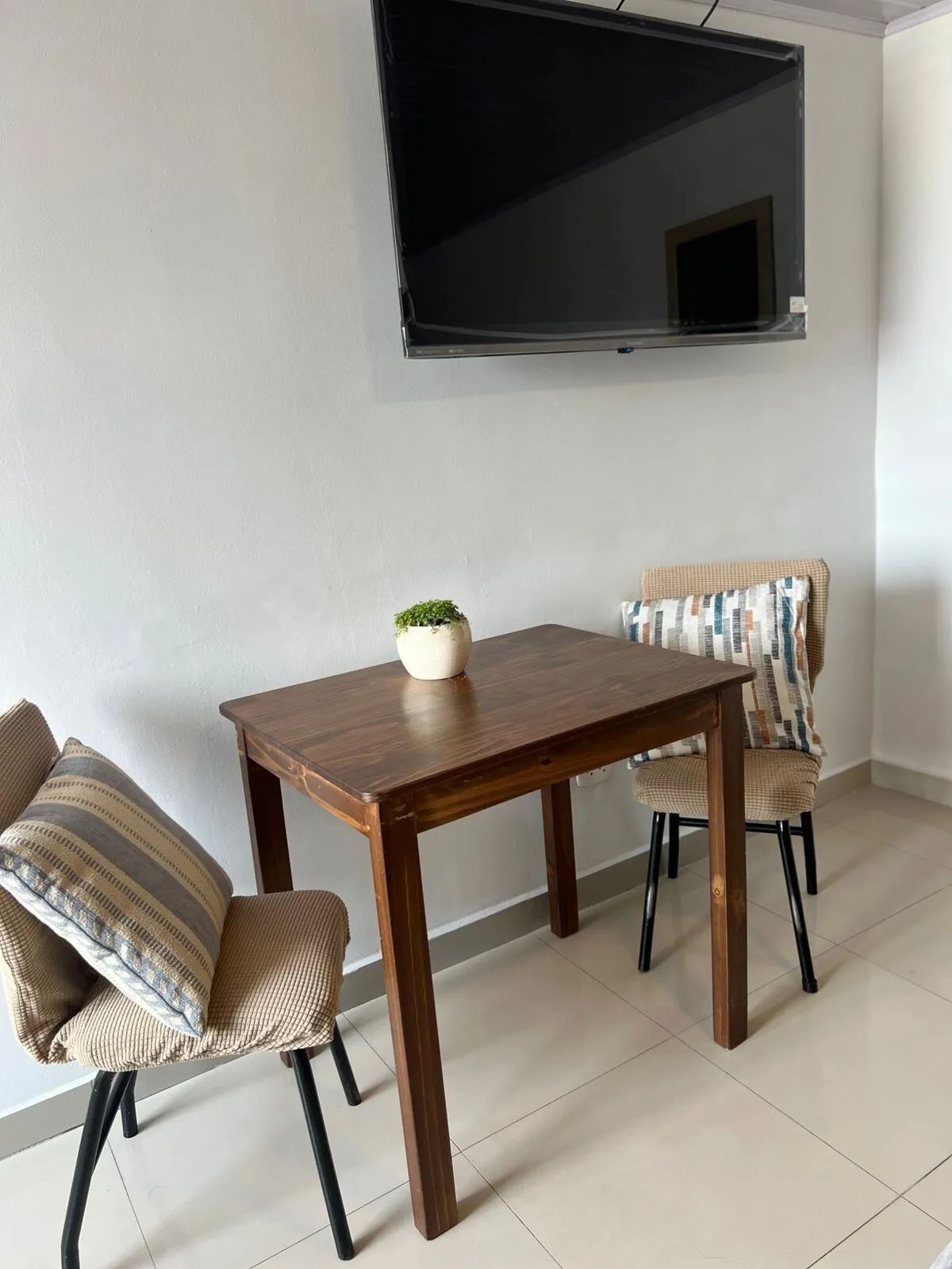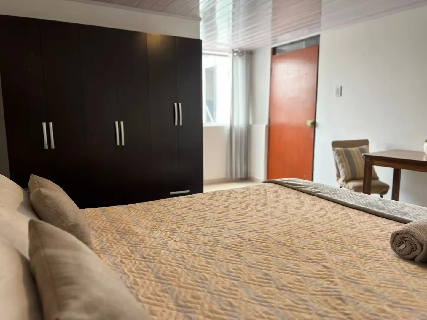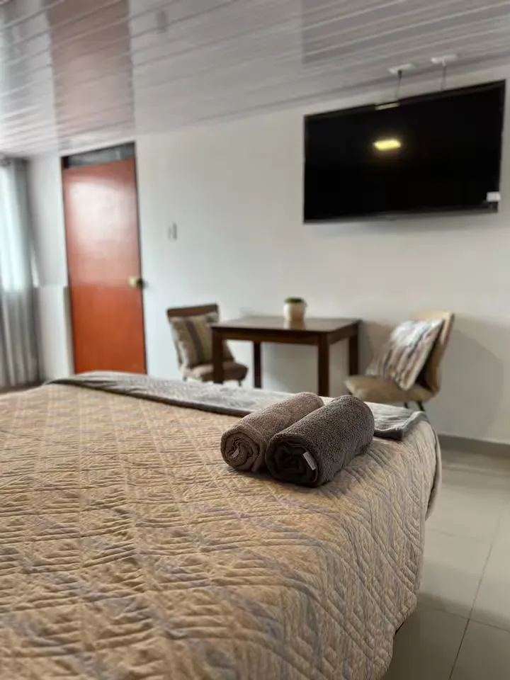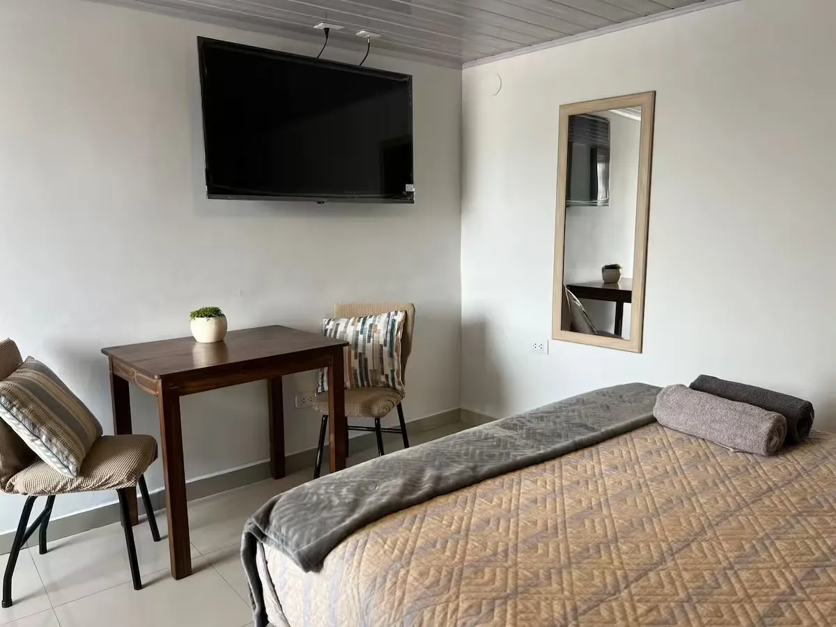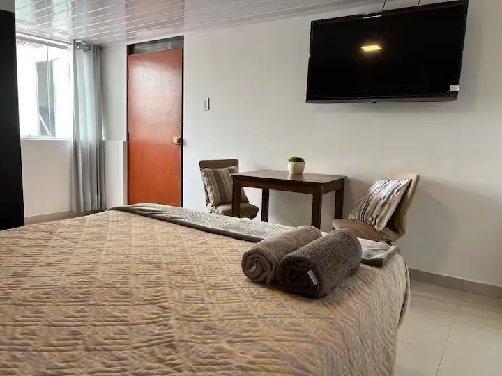 Esta habitación se encuentra en el 4to piso, NO contamos con ascensor, es espaciosa y muy cómoda. Cuenta con una cama Queen, tv Smart 50', baño privado con agua caliente 24/7 y cocina compartida equipada para que la uses cuando quieras.